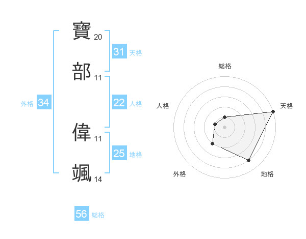 寶部 偉颯さんを姓名の画数から五運を鑑定