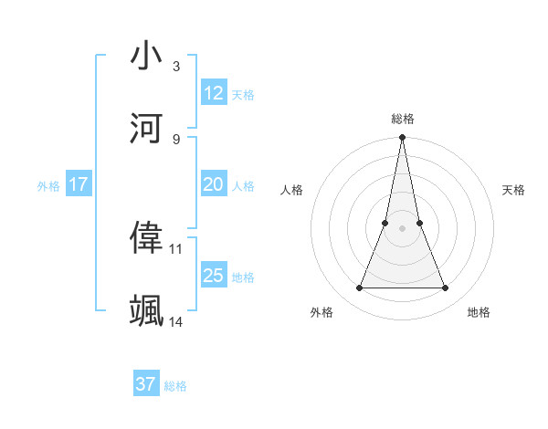 小河 偉颯さんを姓名の画数から五運を鑑定