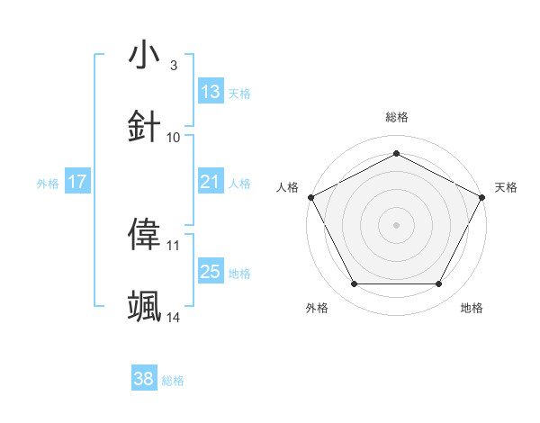 小針 偉颯さんの総格は38画の4点!