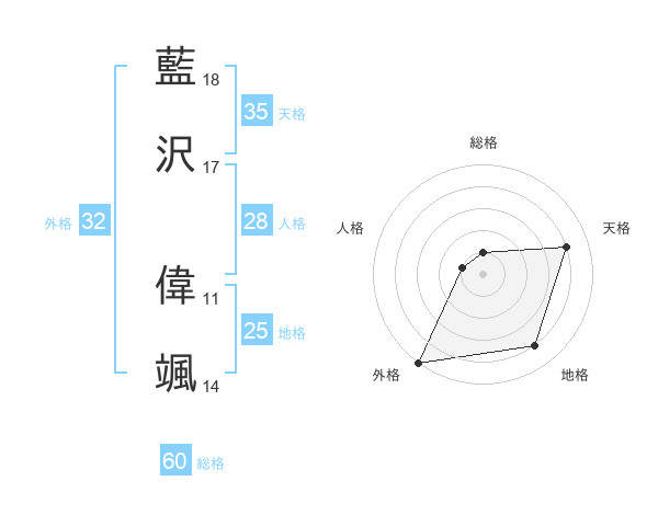 藍沢 偉颯さんの天格は35画の4点!