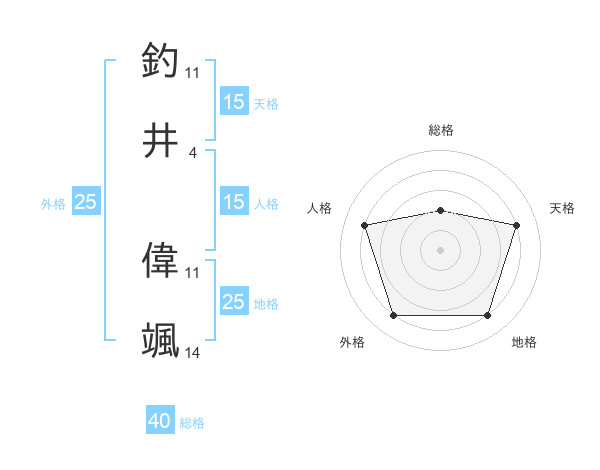 釣井 偉颯さんの外格は25画の4点!