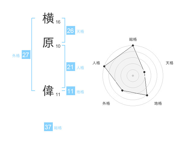 横原 偉さんの総格は37画の5点!