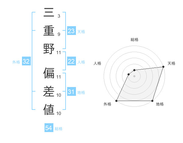 三重野 偏差値さんを姓名の画数から五運を鑑定