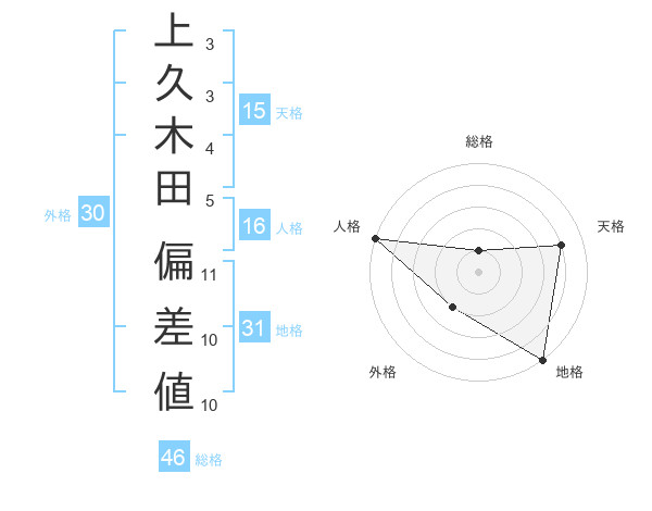 上久木田 偏差値さんを姓名の画数から五運を鑑定