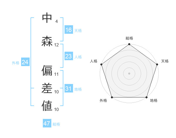 中森 偏差値さんを姓名の画数から五運を鑑定