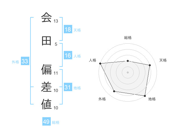 会田 偏差値さんを姓名の画数から五運を鑑定