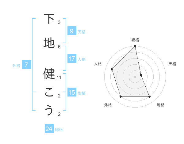 下地 健こうさんの総格は24画の5点!