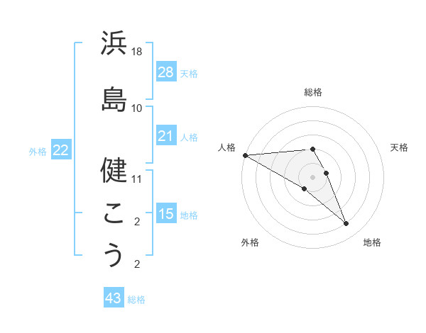 浜島 健こうさんの総格は43画の2点!