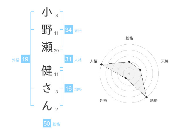 小野瀬 健さんさんを姓名の画数から五運を鑑定