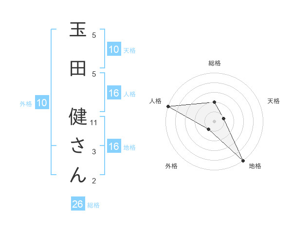 玉田 健さんさんを姓名の画数から五運を鑑定