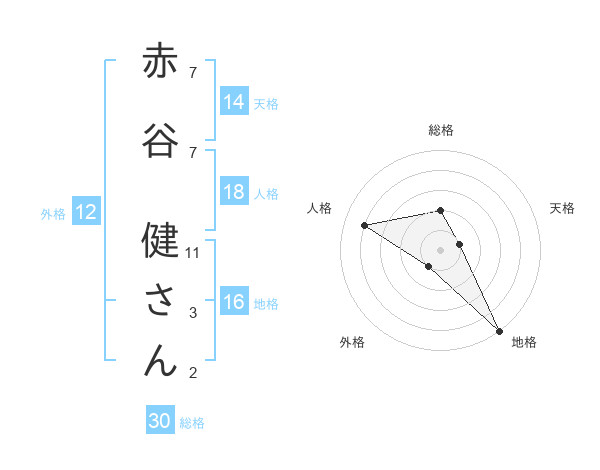 赤谷 健さんさんを姓名の画数から五運を鑑定