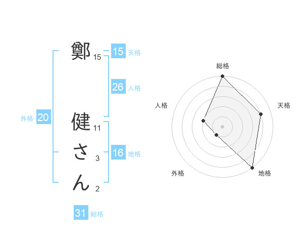 鄭 健さんさんを姓名の画数から五運を鑑定