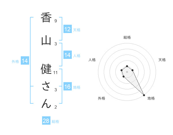 香山 健さんさんの地格は16画の5点!