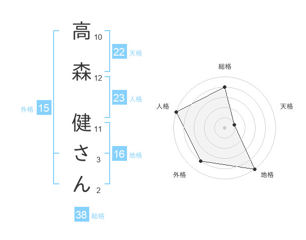 高森 健さんさんの総格は38画の4点!