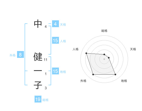 中 健一子さんの地格は15画の4点!