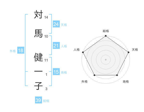 対馬 健一子さんの総格は39画の5点!