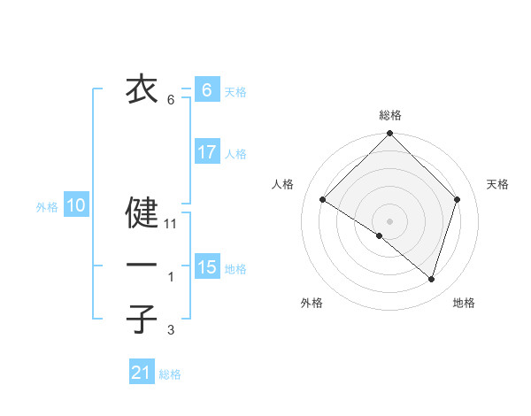 衣 健一子さんの総格は21画の5点!