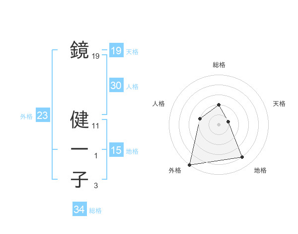 鏡 健一子さんの外格は23画の5点!