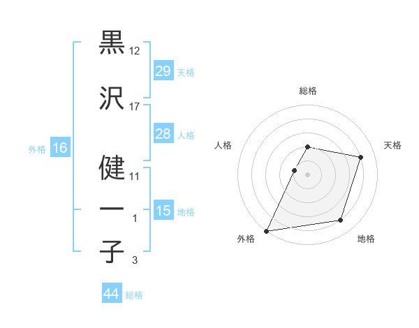 黒沢 健一子さんを姓名の画数から五運を鑑定