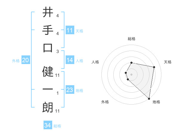 井手口 健一朗さんの総格は34画の2点!