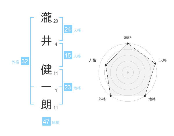 瀧井 健一朗さんの総格は47画の5点!