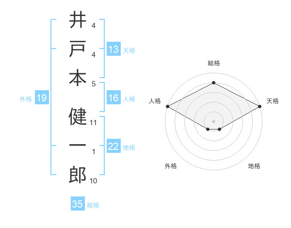 井戸本 健一郎さんの地格は22画の1点!