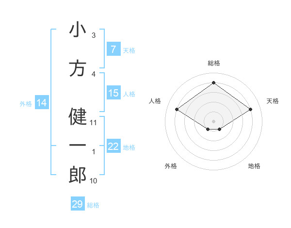 小方 健一郎さんの総格は29画の4点!