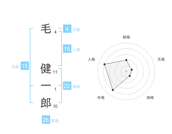 毛 健一郎さんを姓名の画数から五運を鑑定