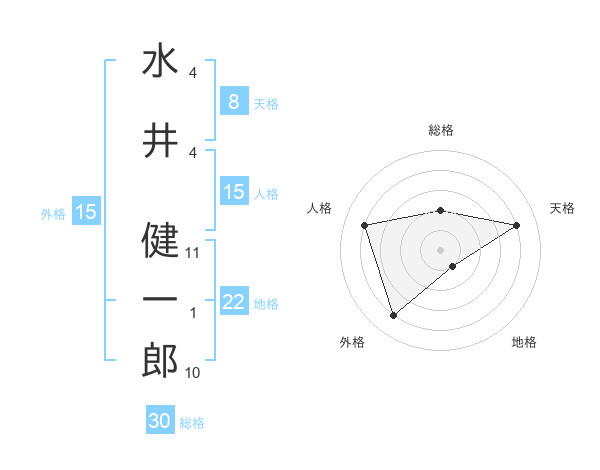 水井 健一郎さんを姓名の画数から五運を鑑定