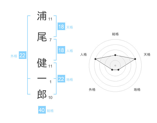 浦尾 健一郎さんを姓名の画数から五運を鑑定