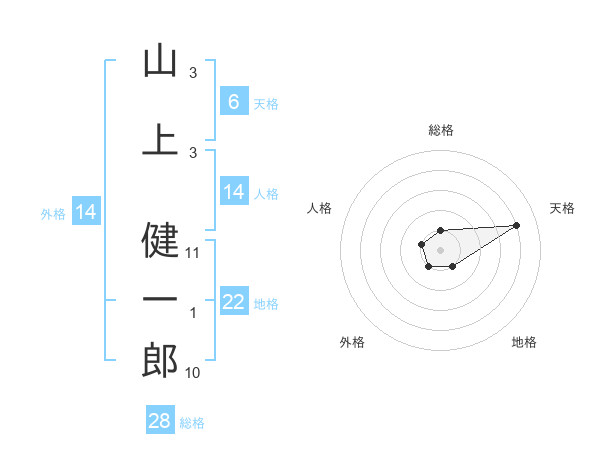 山上 健一郎さんを姓名の画数から五運を鑑定