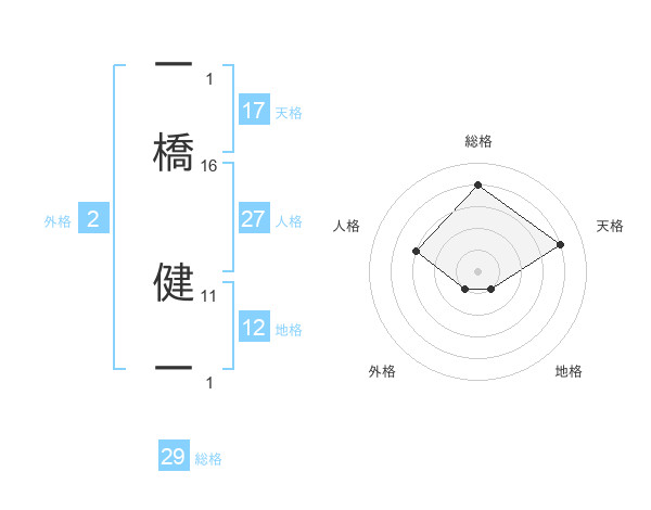 一橋 健一さんの総格は29画の4点!