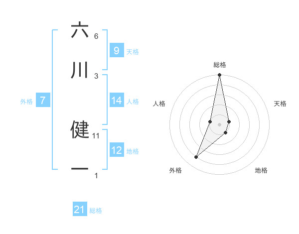 六川 健一さんの総格は21画の5点!