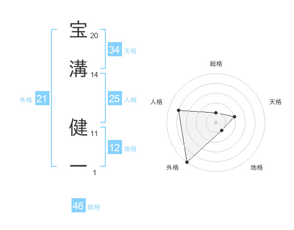 宝溝 健一さんの外格は21画の5点!
