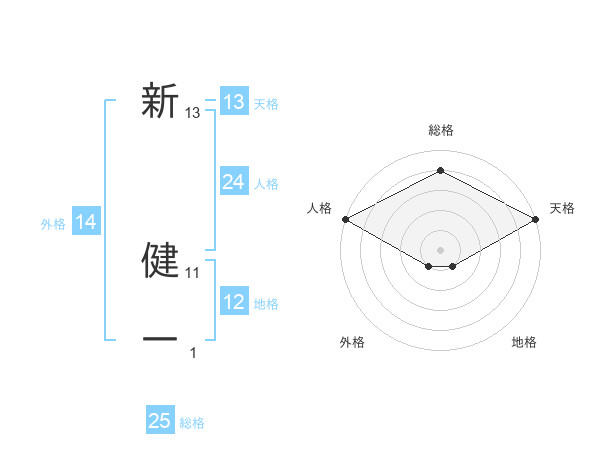新 健一さんの天格は13画の5点!