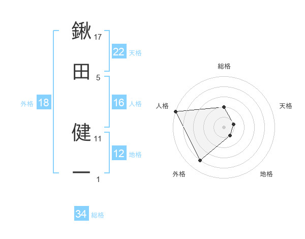 鍬田 健一さんの天格は22画の1点!