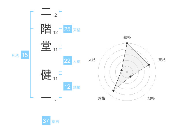 二階堂 健一さんを姓名の画数から五運を鑑定