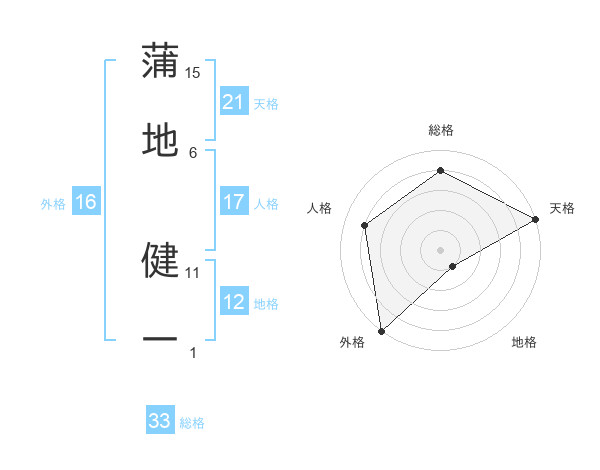 蒲地 健一さんを姓名の画数から五運を鑑定