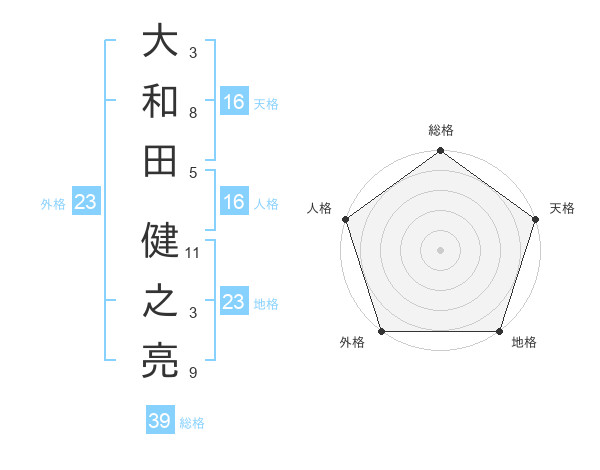 大和田 健之亮さんを姓名の画数から五運を鑑定