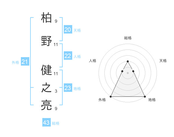 柏野 健之亮さんを姓名の画数から五運を鑑定