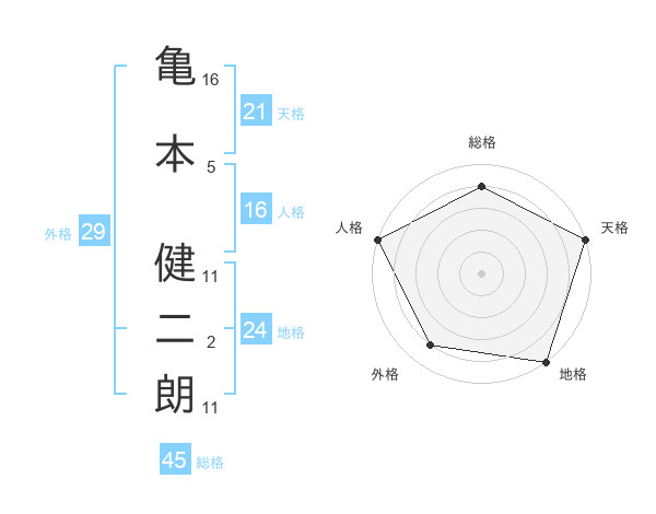 亀本 健二朗さんの天格は21画の5点!