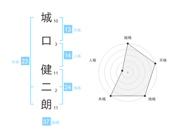 城口 健二朗さんを姓名の画数から五運を鑑定