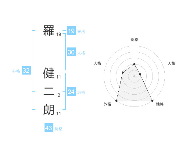 羅 健二朗さんの外格は32画の5点!