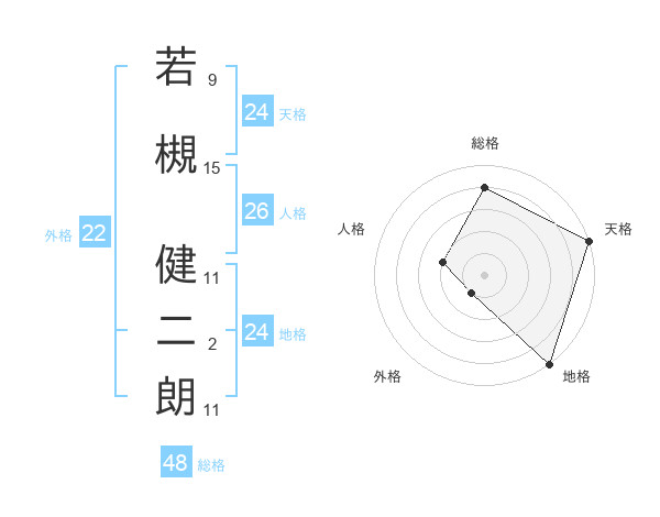 若槻 健二朗さんを姓名の画数から五運を鑑定