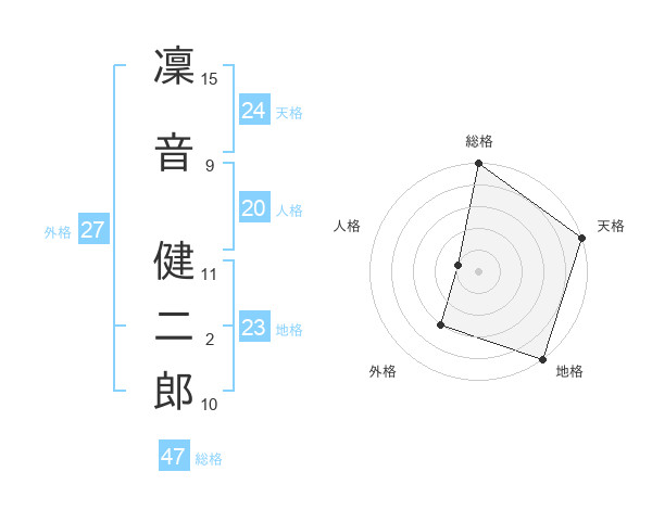 凜音 健二郎さんの総格は47画の5点!