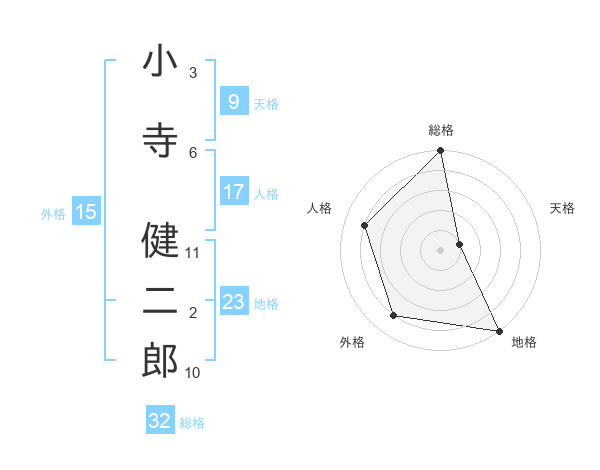 小寺 健二郎さんを姓名の画数から五運を鑑定
