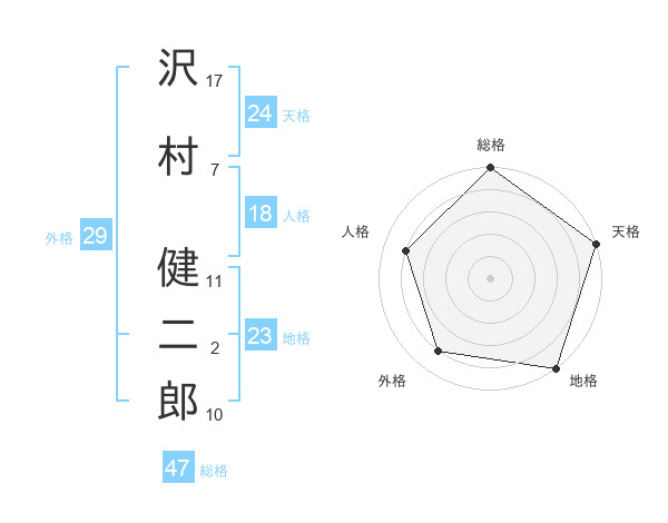 沢村 健二郎さんを姓名の画数から五運を鑑定