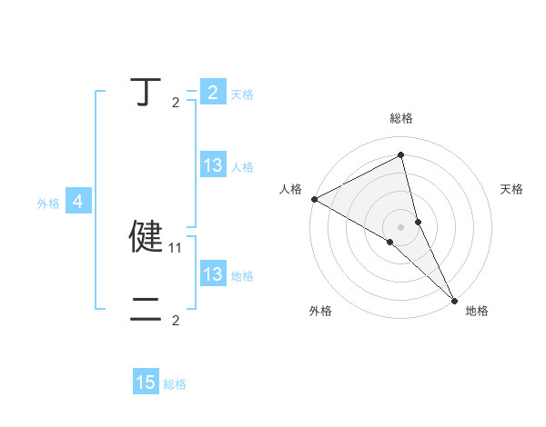 丁 健二さんの総格は15画の4点!