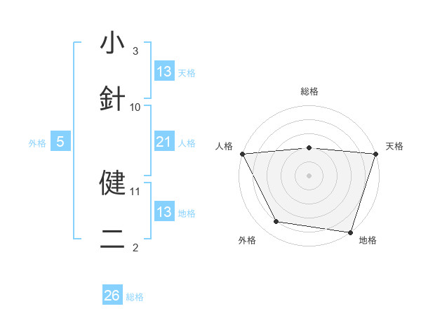 小針 健二さんの天格は13画の5点!