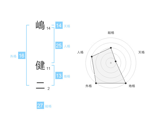 嶋 健二さんの外格は16画の5点!
